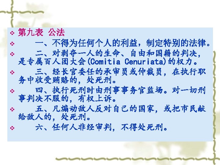 (3)The Third Evacuation Movement v 第三次撤离运动(公元 前449年)——十二表 法的公布。 v Twelve Tables