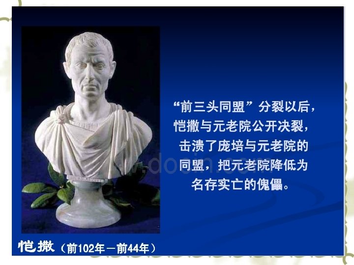 庞培Pompeii 克拉苏Crassus 恺撒Cesar 安东尼Anthony 雷比达Lepidus 屋大维Octavian