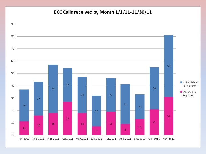 Current calls as of November 30, 2011 • 920 calls • 270 matches • 30. 1% match rate
