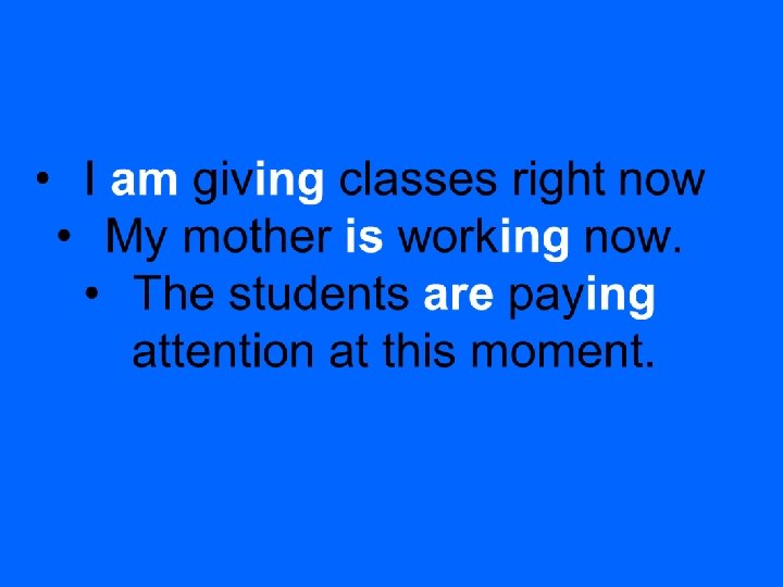 *The present progressive puts emphasis on the course or duration of an action. *The present progressive is used for actions going on in the moment of speaking and for actions taking place only for a short period of time. It is also used to express development and actions that are arranged for the near future. *Present progressive is also known as present continuous.
