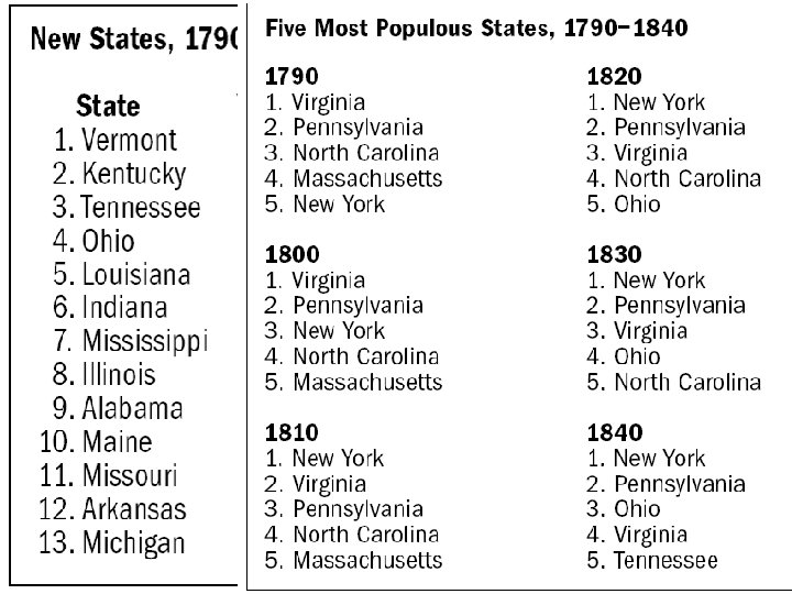 Reasons for Manifest Destiny ■ Changes in the early Antebellum era (1800 -1840), encouraged westward expansion in the 1840 s – The U. S. population grew 300% – The number of U. S. states grew from 13 to 26 – Western state populations exploded (Ohio’s population grew from 50, 000 to 1. 5 million)