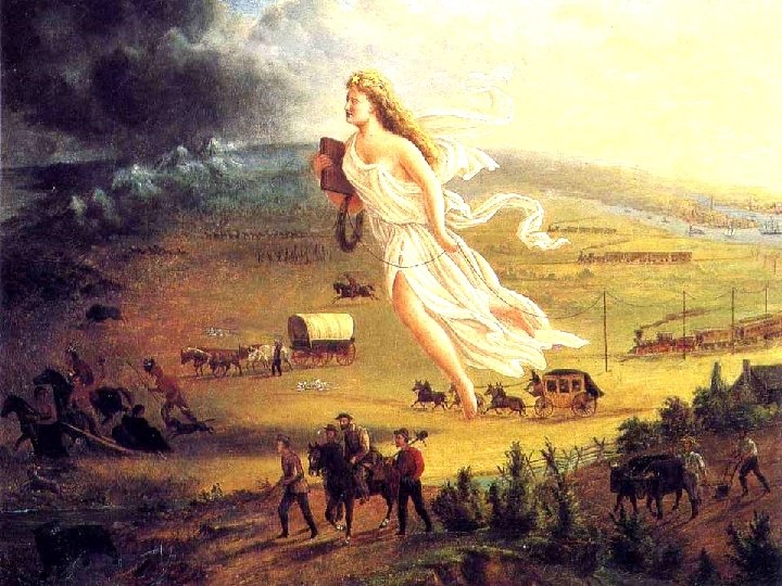 What is Manifest Destiny? Examine the image on the next slide & answer the following questions: – Identify 3 reasons Americans moved West – Identify 3 consequences of American westward expansion – What does the women in the center of the image represent? – What point is the artist trying to make with his use of light?