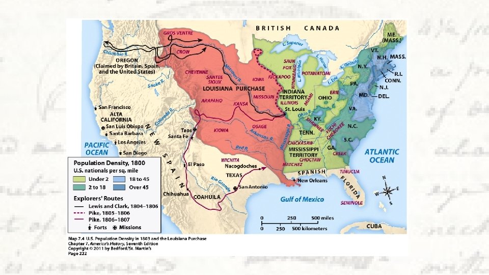 The Louisiana Purchase Background • Settlers were moving West in large numbers • In 1800, Napoleon “convinced” Spain to return the Louisiana territory, which it had lost in the French and Indian War