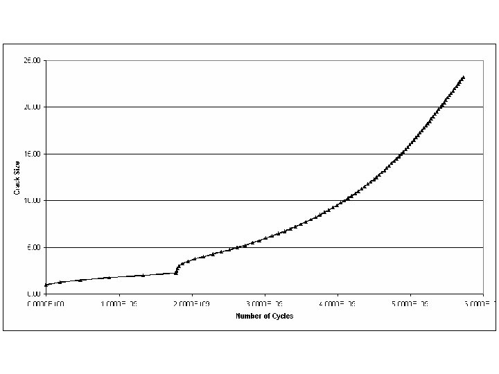 Sub-surface crack grown for 7 increments where the change in crack growth direction can clearly be seen