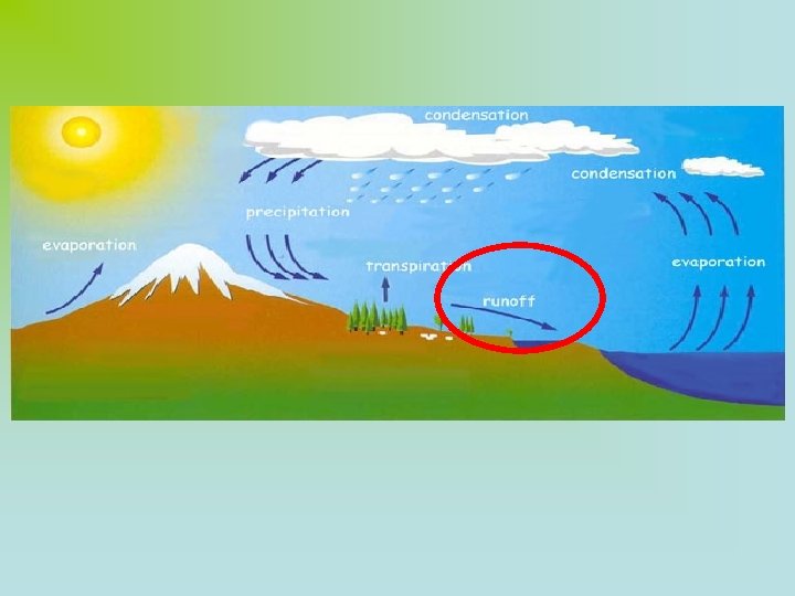 Condensation The movement through plants The Clouds form Transpiration Precipitation The rain falls Evaporation The vapor rises