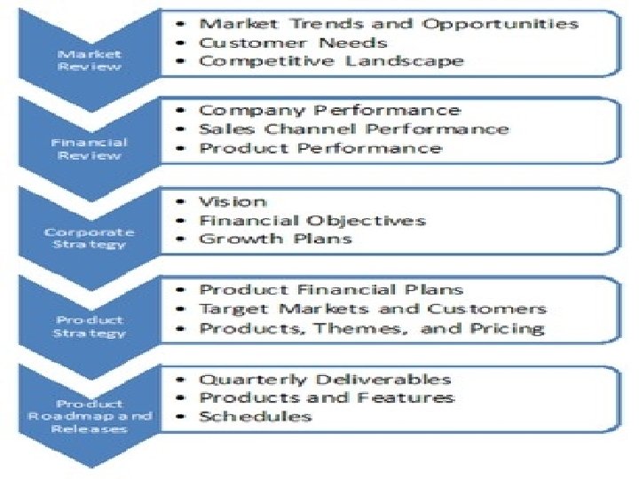 Steps To Product Plan: 1. Let’s assume that the product management department is already managing several products that are currently serving customers. 2. After getting feedback from customers, 3. Speaking with the sales teams, 4. Obtaining a list of the top technical support issues, 5. Surveying competitor positions and features, and 6. Receiving new ideas from development, 7. The product management team has generated a list of possibly hundreds of potential product 8. Enhancements across the product line as well as some new product ideas. 9. Project prioritization typically takes place next due to limited development resources.