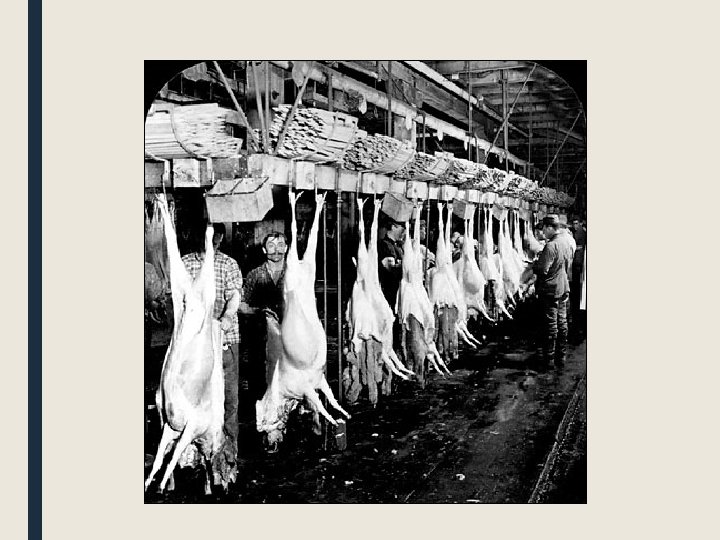 Upton Sinclair’s: “The Jungle” • In 1906, author Upton Sinclair wrote “The Jungle” • In “The Jungle”, Sinclair describes the horrific conditions of workers in a Chicago meat-processing plant. • Outrage however ensued over the unsanitary conditions of the stockyard. • As a result, the US government passed the Meat Inspection Act and the Pure Food and Drug Act to improve safety of edible products.