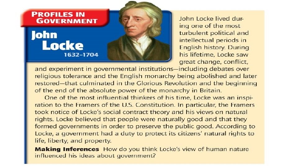 THEORIES OF RULE The Social Contract • Social contract theory: governments formed when people agreed to submit to state authority in return for protection and support • Government is legitimate only so long as the power is given to the state. • Contributed to by Hobbes, Locke, and Rousseau