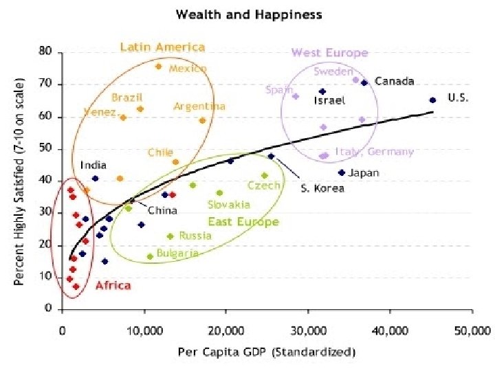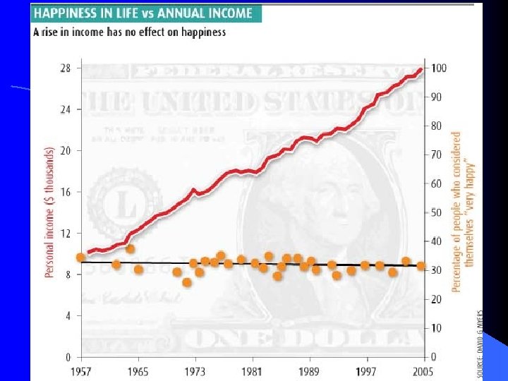 CAN HAPPINESS BE BOUGHT? Once survival needs are met, increases in wealth do not yield greater happiness. Lottery winners experience temporary euphoria but end up getting less pleasure out of mundane events. Habituation fairly quickly sets in. The more a person has, the more they tend to want – hence no gain in satisfaction.