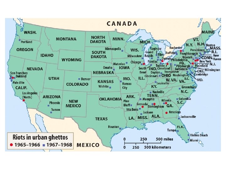 Election of 1964 • Right: (Goldwater) Pushes idea of Law and Order • Street crime, civil unrest (riots) & moral chaos (drugs/sexual revolution) • Left: (LBJ) Pushes idea of Civil Rights, War on Poverty and The Great Society. Carrying out JFK legacy.