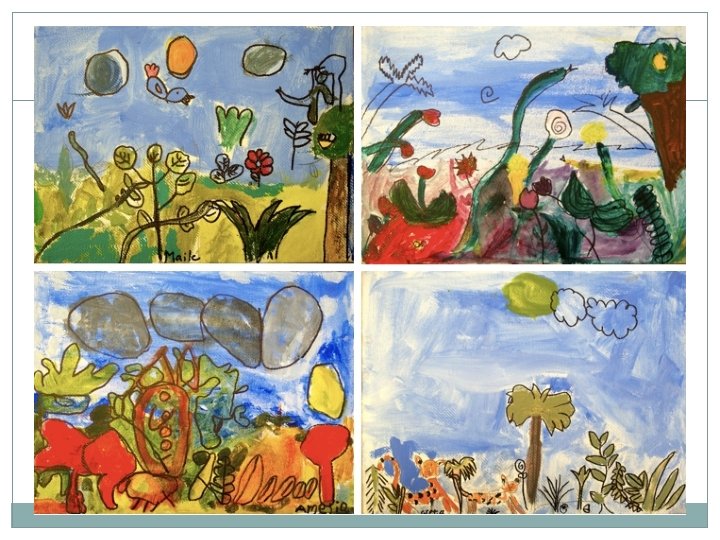 Lesson 2: Plants and Animals: Rationale: -Students will create a rainforest habitat mural throughout the hallway as a class, adding animals and plants to it as they learn about them. They will understand the concept of a mural after learning about Michaelangelo and his famous mural in the Sistine Chapel. -Science: As students learn about various plants and animals of the rainforest, they can make them out of paper or any other material, label them, and place them in their appropriate spot on the rainforest mural. -Art: Students will create a large tree on a mural, showing the different layers of the rainforest and 3 -D animals and plants. Standards: PA Art 9. 2. 3. F-Know and apply appropriate vocabulary used between social studies and the arts and humanities. PA Language Arts 4. 7. 4 A- Identify differences in living things. Objectives: -Students will be able to exhibit an understanding of the layers of the rainforest by creating a habitat of their own. This will be done by painting a mural on the hallway windows. -They will be able to identify different species of plants and animals by creating them out of construction paper and placing them on the appropriate layer of the rainforest habitat.