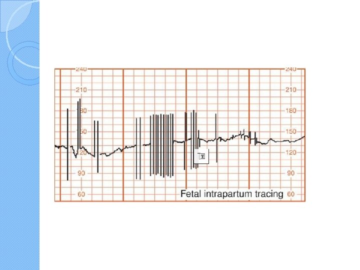 Causes of category II and III tracings unrelated to fetal hypoxemia � ●Fetal arrhythmias � ●Technical factors including a faulty leg plate, electrode, or monitor; setting the recording rate at 1 cm/min instead of the standard 3 cm/min; and the fact that very slow FH rates may be doubled and very fast rates (>240 bpm) may be halved by the machine. � ●The fetal and maternal heart beats are typically distinguished by the faster rate of the fetus (110 to 160 versus <100 bpm). they can beat at a similar rate. The fetal heart rate may be the same or slower than the maternal rate if there is a fetal heart rate deceleration or prolonged bradycardia or in the presence of maternal tachycardia due to fever or stress