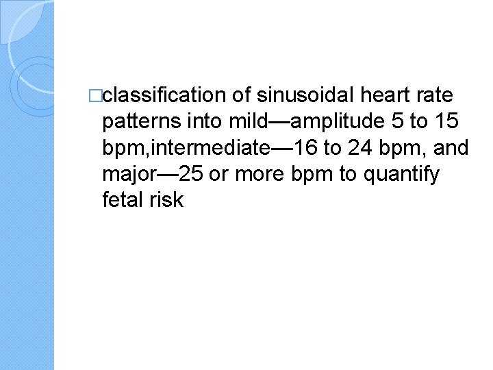 �classification of sinusoidal heart rate patterns into mild—amplitude 5 to 15 bpm, intermediate— 16 to 24 bpm, and major— 25 or more bpm to quantify fetal risk