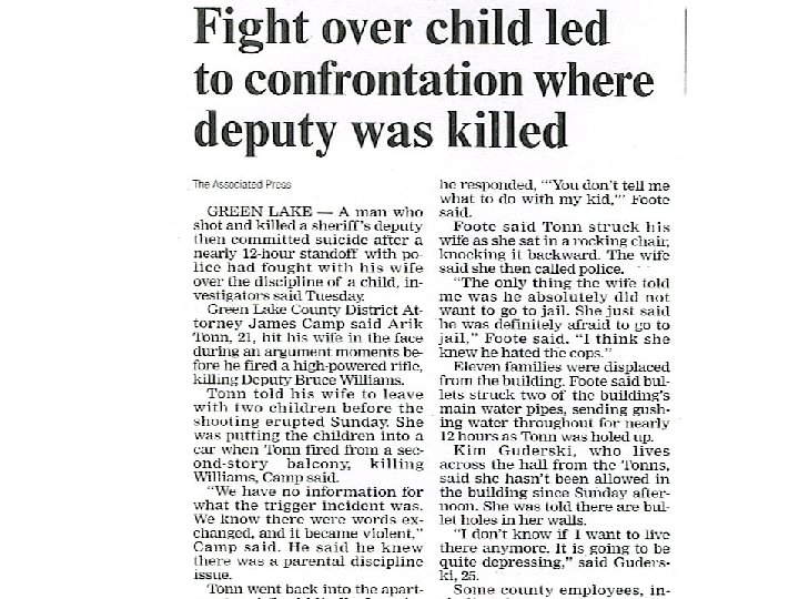 Realities of VAW Crimes Officers assaulted and killed 1999 -2003 143 firearm assault from 39 states involving 131 agencies • 143 assailants and 225 officers fired upon • 43% were hit by gunfire and 14% died • 50% of the assaults occurred at distances greater than 50 feet – most typical shootings occur at 15 feet • Surviving Firearm Assaults at Domestic Violence Calls 2007 Richard Johnson Ph. D – University of Toledo