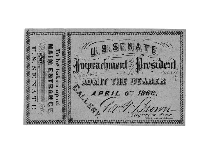 The country regarded the whole situation as a great melodrama: Tickets to the Senate gallery were the toughest buy in town. On May 16, 1868, the first of three votes was taken to remove Johnson from office.