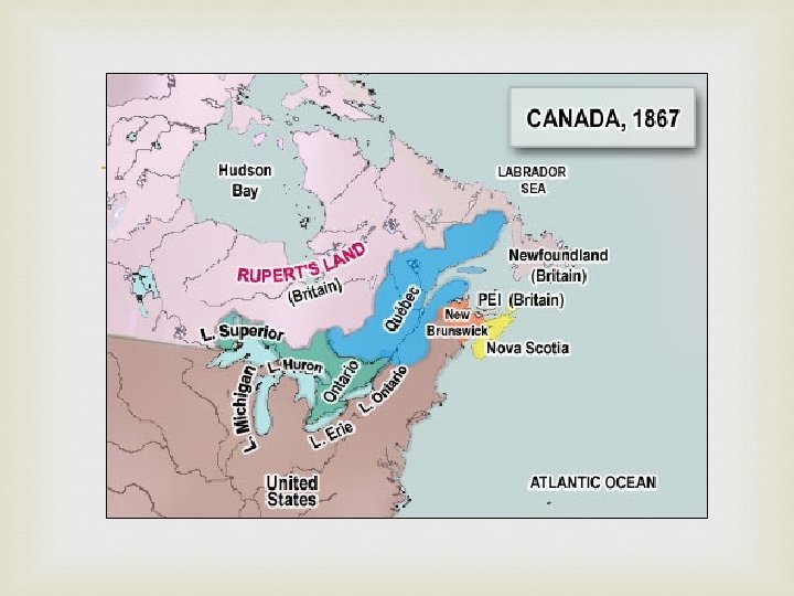 The Purchase of Rupert’s Land When the Fathers of Confederation wrote the BNA Act, they included provisions to add other colonies and territories such as Rupert’s Land The HBC also wanted to sell Rupert’s Land: Hard to maintain control over the large area Fur trade was declining More and more settlers moving there