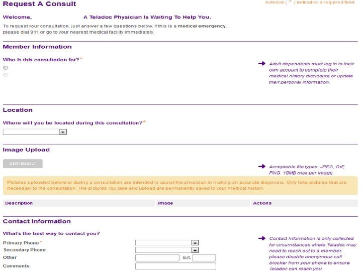Disclaimers © 2016 Teladoc, Inc. All rights reserved. Teladoc and the Teladoc logo are registered trademarks of Teladoc, Inc. and may not be used without written permission. Teladoc does not replace the primary care physician. Teladoc does not guarantee that a prescription will be written. Teladoc operates subject to state regulation and may not be available in certain states. Consults are not available outside of the U. S. Teladoc does not prescribe DEA controlled substances, non-therapeutic drugs and certain other drugs which may be harmful because of their potential for abuse. Teladoc physicians reserve the right to deny care for potential misuse of services. Teladoc phone consultations are available 24 hours, 7 days a week while video consultations are available during the hours of 7 am to 9 pm, 7 days a week.