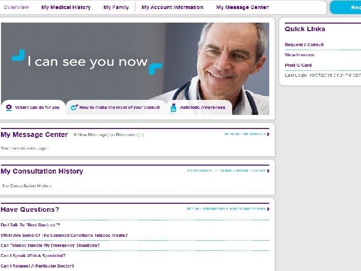 Requesting a Consultation When can you request a consultation? Anytime. Anywhere. 1 2 3 4 Log into your account at www. Teladoc. com/feelbetter Click Request a consult Select the type of consultation you want Provide a little information © 2016 Teladoc, Inc. All rights reserved. 13
