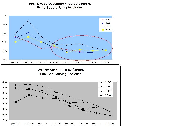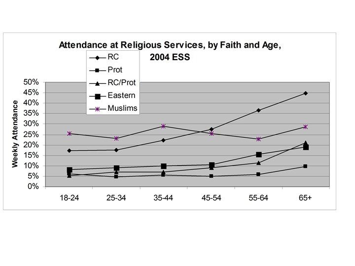 Surely Not Europe? • Christian Fundamentalism is on the rise, but still very small (max. 1 -2%) • Church Attendance low (moving to 5 -10%) • But Belief is much stronger (40 -50% 'religious', 50 -65% 'believe in God') • 'Believing without belonging' matters for voting and for fertility
