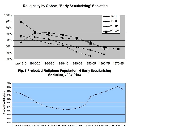 But We Must Also Consider Apostasy "1. The publics of virtually all advanced industrial societies have been moving toward more secular orientations during the past fifty years. Nevertheless, 2. The world as a whole now has more people with traditional religious views than ever before- and they constitute a growing proportion of the world's population. " (Inglehart & Norris 2004) • Which will dominate: religious fertility or secularisation?