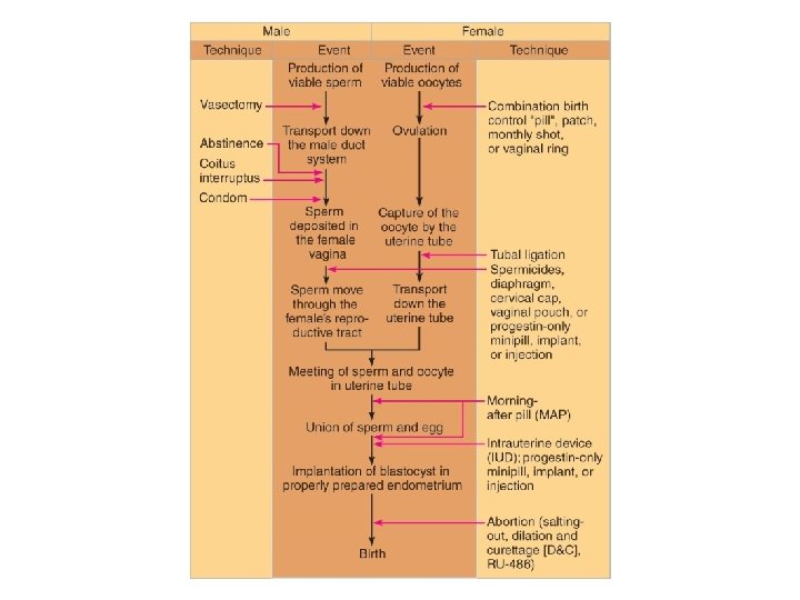 A Closer Look: Contraception • Abortion—termination of pregnancy • Miscarriage—spontaneous abortion is common and frequently occurs before a woman knows she is pregnant • RU 486 or “abortion pill”—induces miscarriage during first 7 weeks of pregnancy