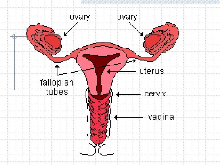 Hymen n A mucous membrane partially closing the external opening of the vagina w No known function and not present in all females Vagina (Birth Canal) n Muscular, very elastic tube that serves as a passageway to the uterus Cervix n The lower end or neck of the uterus or the opening between the uterus and the vagina Uterus n Small, muscular, pear-shaped organ about the size of a fist