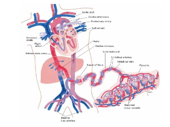 Adjustments of the Infant to Extrauterine Life 1. After the umbilical cord is clamped, carbon dioxide accumulates in the infant’s blood, causing respiratory centers in the brain to trigger the first inspiration. 2. Once the lungs are inflated, breathing is eased by the presence of surfactant, which decreases the surface tension of the alveolar fluid. 3. During the first 8 hours after birth, the infant is physiologically unstable and adjusting. After stabilizing, the infant wakes approximately every 3– 4 hours in response to hunger. 4. Inflation of the lungs causes pressure changes in the circulation; as a result, the umbilical arteries and vein, ductus venosus, and ductus arteriosus collapse, and the foramen ovale closes. The occluded blood vessels are converted to fibrous cords; the site of the foramen ovale becomes the fossa ovalis.