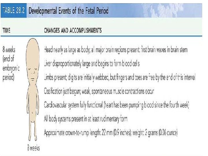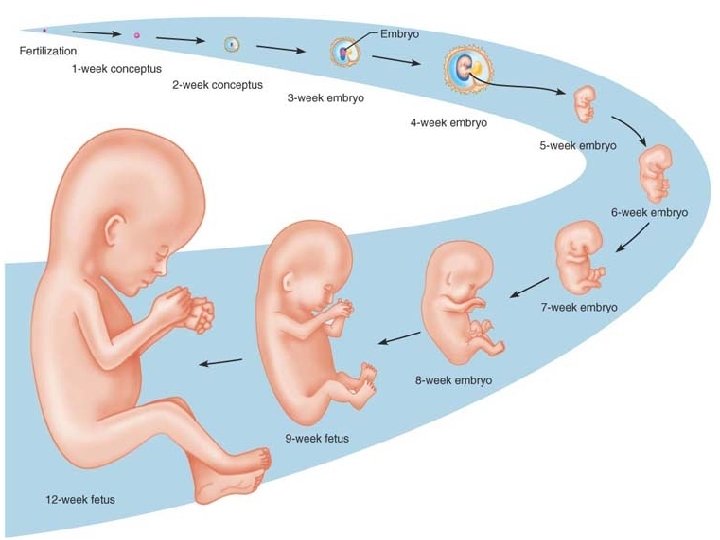 Pregnancy and Human Development • The term pregnancy refers to events that occur from the time of fertilization (conception) until the infant is born. • The time during which development occurs is referred to as the gestation period and extends from the last menstrual period (a date the woman is likely to remember) until birth, approximately 280 days. Thus, at the moment of fertilization, the mother is officially two weeks pregnant! • From fertilization through week 8, the embryonic period, the conceptus is called an embryo, and from week 9 through birth, the fetal period, the conceptus is called a fetus. • At birth, it is an infant.