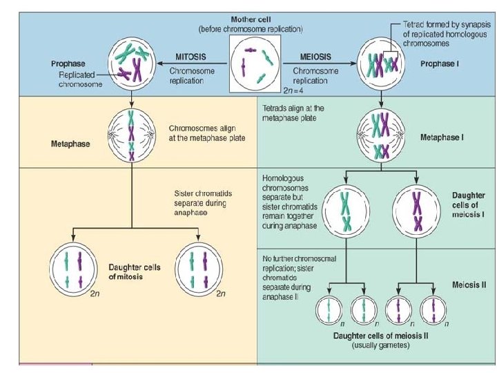 • The number of chromosomes present in human gametes is 23, referred to as the haploid chromosomal number , or n; gametes contain only one member of each homologous pair. When sperm and egg fuse, they form a fertilized egg that reestablishes the typical diploid chromosomal number of human cells. Gamete formation in both sexes involves meiosis, a unique kind of nuclear division that occurs only in the gonads. • Meiosis consists of two consecutive nuclear divisions, and its product is four daughter cells instead of two, each with half as many chromosomes as typical body cells. Thus, meiosis reduces the chromosomal number by half (from 2 n to n) in gametes.