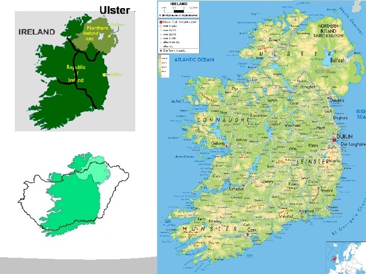 Ulster Flag The Red Hand of Ulster - Denotes the Irish province of Ulster. - Mythical Irish figure Labraid Lámh Dhearg (Red Hand Labraid) - The symbol was already used by the Normans - Now: Ulster loyalist symbol Ulster loyalism: - a political ideology, mainly among working class Ulster Protestants in Northern Ireland. - They support the British Monarchy, the continued existence of Northern Ireland, and oppose a united Ireland. - Ulster Protestants are mostly descendants of settlers from Great Britain (17 th and 18 th centuries –The Plantation).