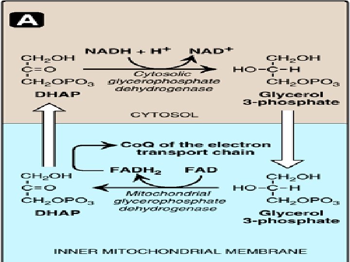Mitochondria Outer Membrane: permeable ﻣﻨﻔﺬ Inner membrane: impermeable ﻏﻴﺮ ﻣﻨﻔﺬ Matrix: 50% protein Oxidation of pyruvate, Β-oxidation TCA cycle, Urea synthesis, NAD, FAD ADP+P=ATP