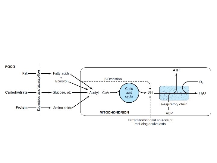 • Sources of reducing equivalents – β-oxidation – the citric acid cycle – Extramitochondrial