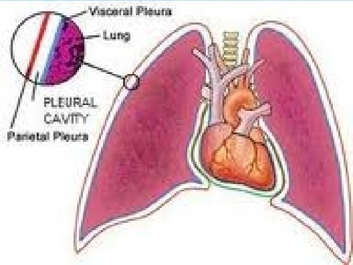 Pleurae �Thin, double-layered serosa �Parietal pleura ◦ Covers the thoracic wall and superior face of the diaphragm ◦ Continues around heart and between lungs