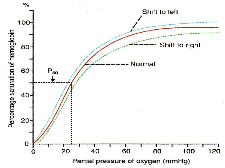 Oxygen hemoglobin dissociation curve The relationship between the partial pressure of oxygen and the percentage saturation of hemoglobin with oxygen can be explained graphically and the graph is called oxygen hemoglobin dissociation curve. Normally in the blood, hemoglobin is saturated with oxygen only up to 95%. The saturation of hemoglobin with oxygen depends upon the partial pressure of oxygen. When the partial pressure of oxygen is more, hemoglobin accepts oxygen and when the partial pressure of oxygen is less, hemoglobin releases oxygen.
