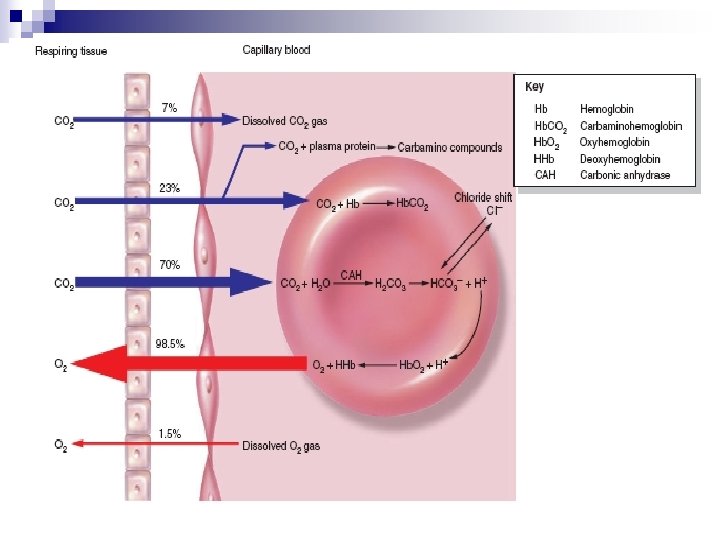 Gas diffusion Oxygen, mm Hg Medium 159 Atmosphere Carbon dioxide, mm Hg 0. 2 104 -108 Alveolar air 38 40 Venous blood 46 100 -102 Arterial blood 40 0 -20 Tissue fluid 60