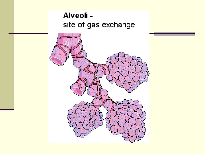How Respiration Works n 5. The bronchi are broken down into smaller passageways called bronchioles n a. think of this as a tree with branches n 6. Air then enters alveoli – tiny sacs at the end of bronchioles A. This is where external respiration takes place!!! n http: //www. youtube. com/watch? v=1 J 8 KFmoyl Es n