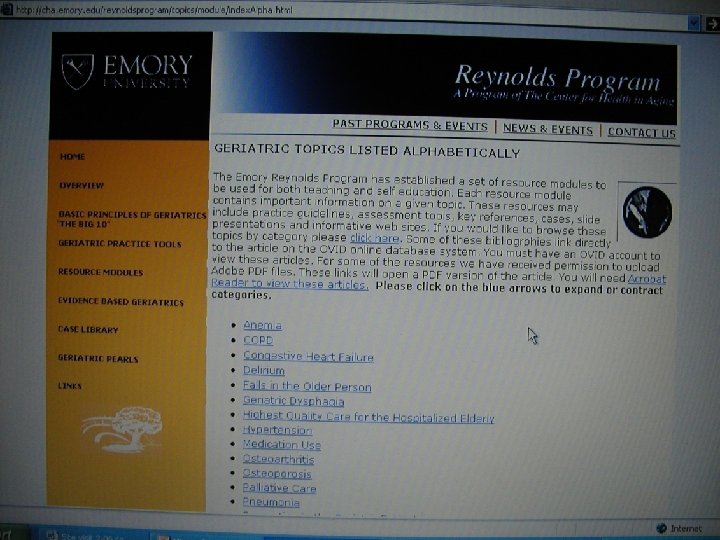 Emory Reynold’s Involvement n The Reynold’s Foundation Grant has opened doors for EFMRP to have access to superior educational resources Atlanta VAMC geriatrics rotation n Beverly Northside Nursing Home n Web Resources at: n www. cha. emory. edu/ n