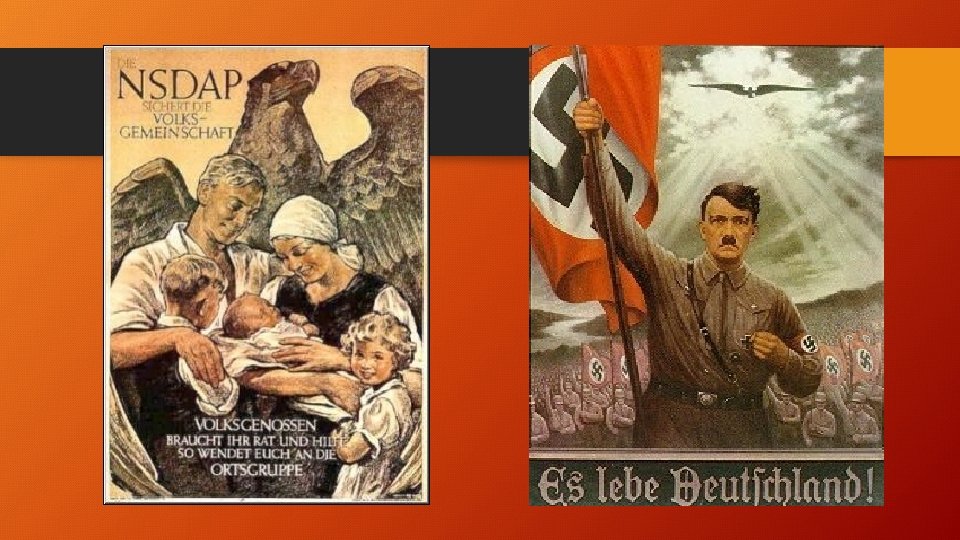 Mein Kampf • He only serves 9 months out of his 5 -year sentence. • He writes his book, “Mein Kampf” or “My Struggle” where he outlines his hatred for Jews and non. Germans. He places the blames of Germany’s economic ruin on them. • After prison, Adolph worked harder to gain support through speaking publicly about his idea of a “pure German race”.