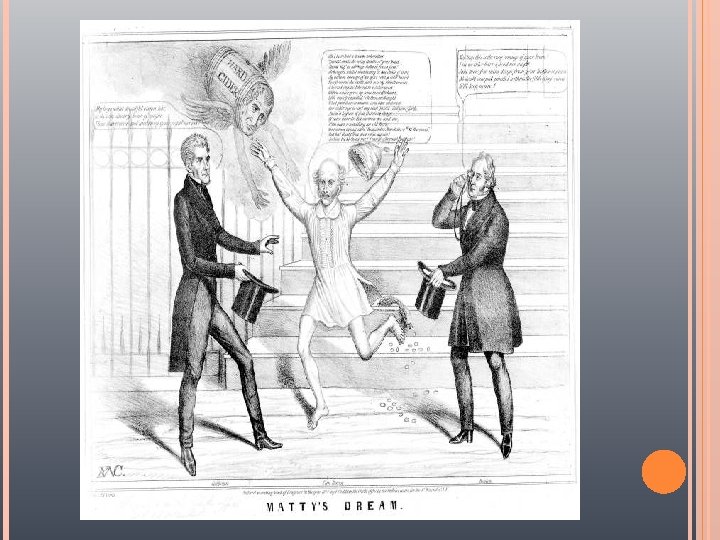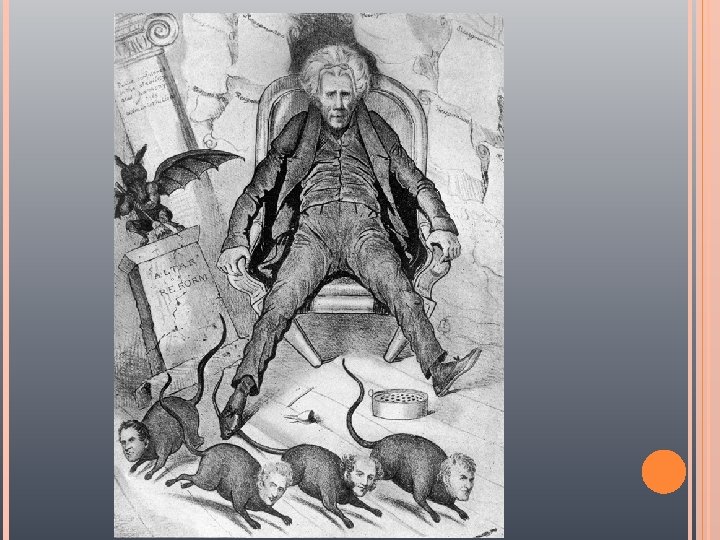 E. THE SPOILS SYSTEM “to the victor go the spoils” Jackson’s idea of office rotation Loyalty to parties, candidates Incompetence Cemented 2 -party system
