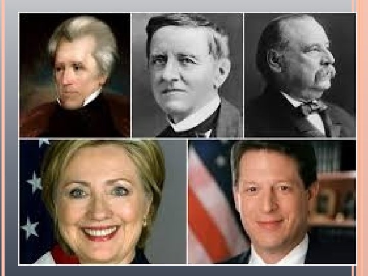 CHANGE OVER TIME: POLITICS ❧ Important Change #1: ❧ 1840 s: Triumph of democratic populist style ❧ Aristocracy was tainted, log cabins were in ❧ Being perceived as clean, well-dressed, grammatical, intellectual were negatives when it came to national elections ❧ Sturdy American, course trousers, coonskin cap, no collar – this was in