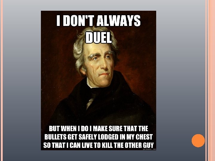 D. “OLD HICKORY” AS PRES. Informal education Frontier aristocrat Jackson’s inaugural party Fear of French Revolution