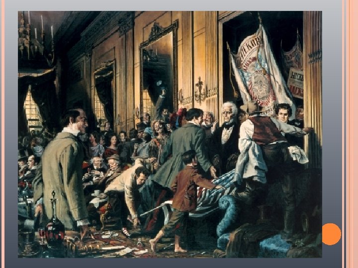 T. THE 2 -PARTY SYSTEM By 1840 s the organized 2 -party system was entrenched Whigs- nationalism Democrats- states’ rights, less govt. involvement *both trying to gain as many voters as possible