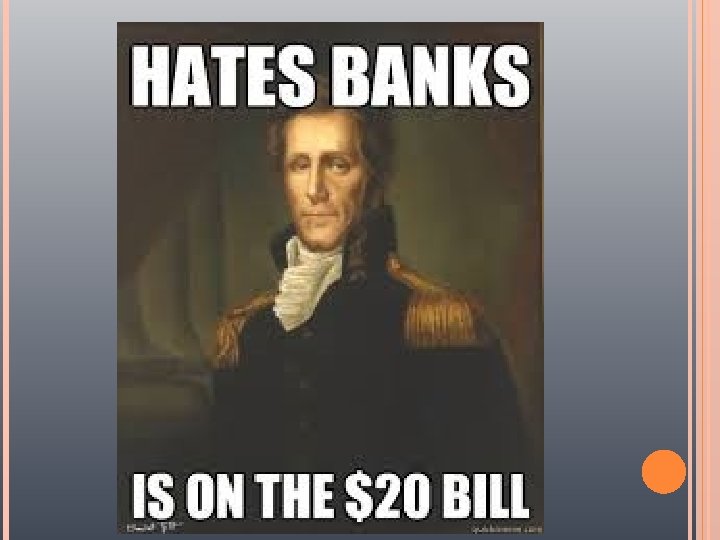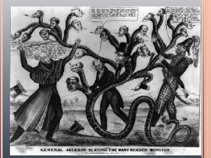 I. THE BANK WAR Jackson believed bank held too much power (along w/ its pres. , Nicholas Biddle) Hated by J’s supporters Bank Recharter Bill- 1832 Reelection issue (H. Clay) J vetoes- hated by NE J signs- loses support of S & W vetoed