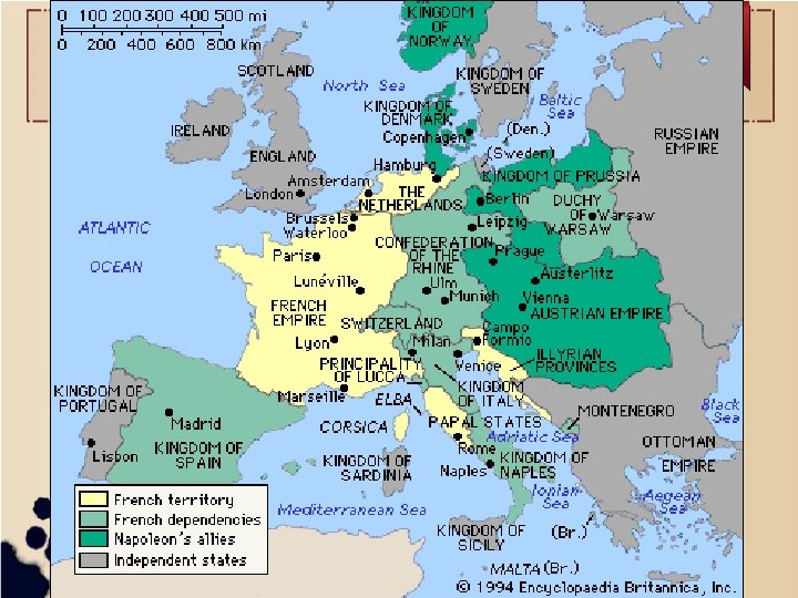 Expanding Empire Napoleon becomes involved with Switzerland May 1803 Britain declares war on France French troops prepare to invade Britain, sold Louisiana to gain money (15 cents an acre) December 1804 Senate declare him “First Consul of the Republic” became Napoleon I In 1804 Napoleon loses Haiti in another revolution “damn sugar, damn coffee, damn colonies”