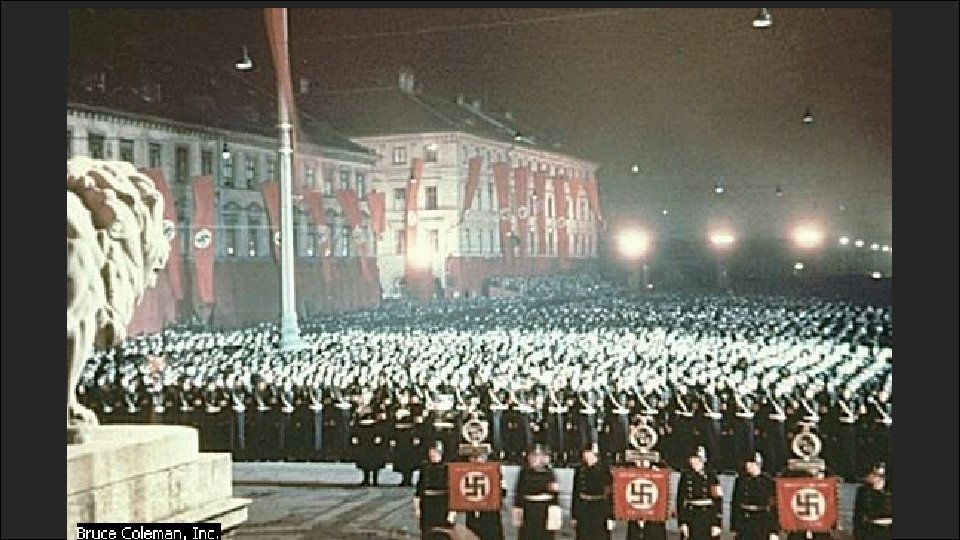 Hitler’s Actions • Germans who spoke against the Nazis were imprisoned or murdered. • Hitler’s military strength grew, and he began to make plans to go to war. • In 1936, he sent troops into former German territories that were lost in WWI. • By 1938, German troops controlled Austria & Czechoslovakia.