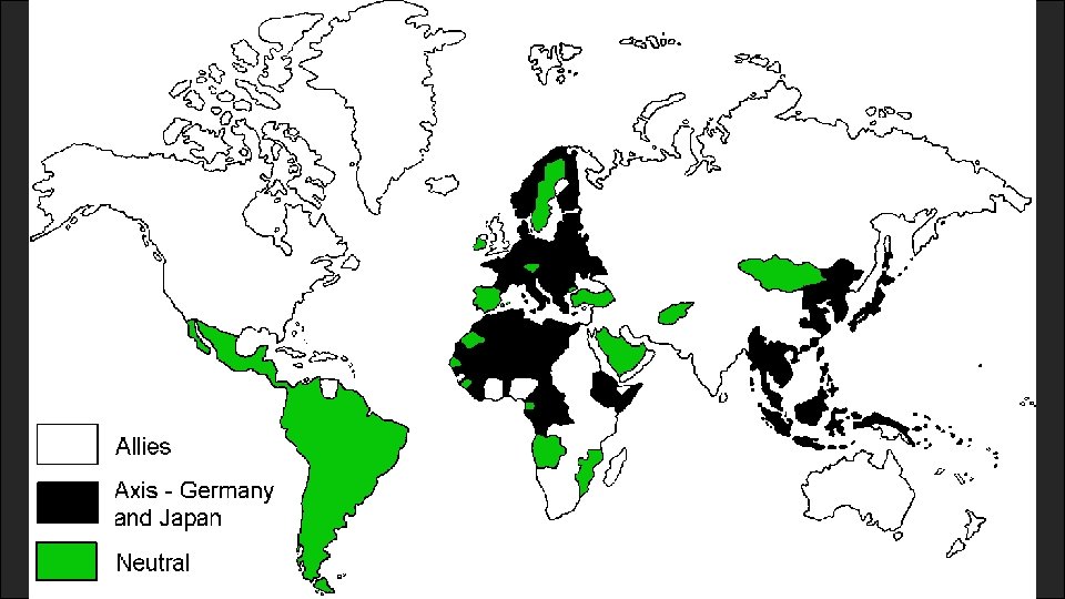 WW II Europe • Red countries are Allied or Allied-controlled. • Blue is Axis or Axis controlled countries. • The Soviet Union is colored green (prior to joining the Allies in 1941).