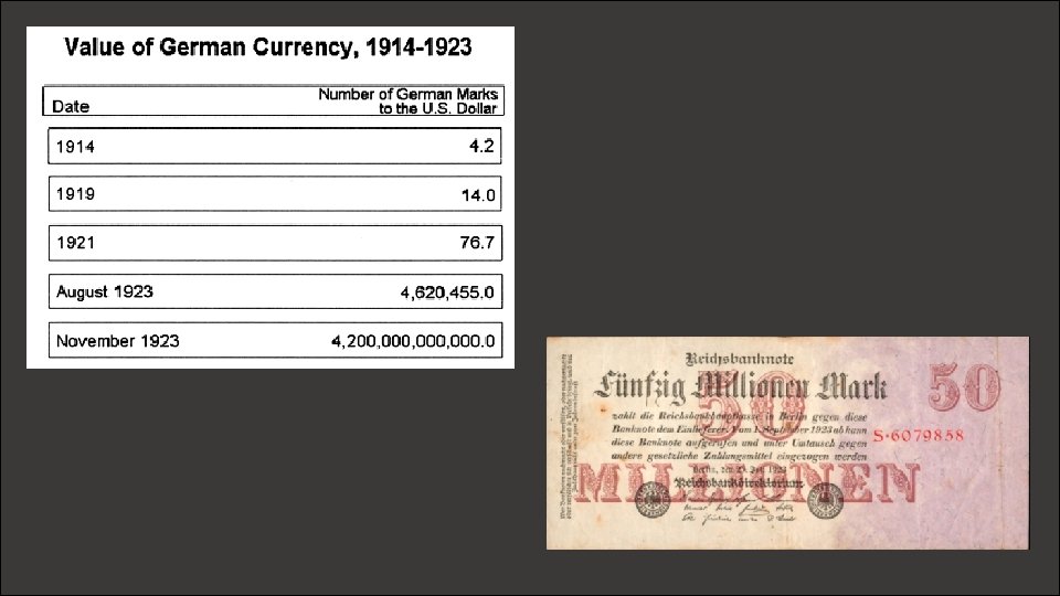 Germany’s Economic Depression • Prices went up as goods became scarce. • Basic items such as food and clothing were not always available. • Men had trouble finding jobs to support their families. • The value of German money became extremely inflated…