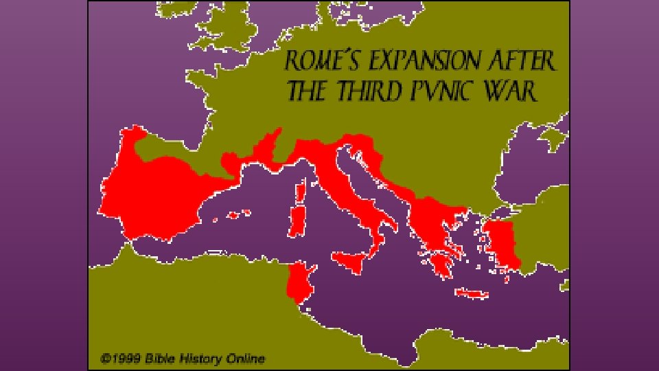 Hannibal’s Plan • Thousands died along the way • Roman general Scipio was elected consul – Scipio’s arm defeated Hannibal at the battle of Zama • Hannibal’s defeat gave Rome control of Carthage’s HUGE territory