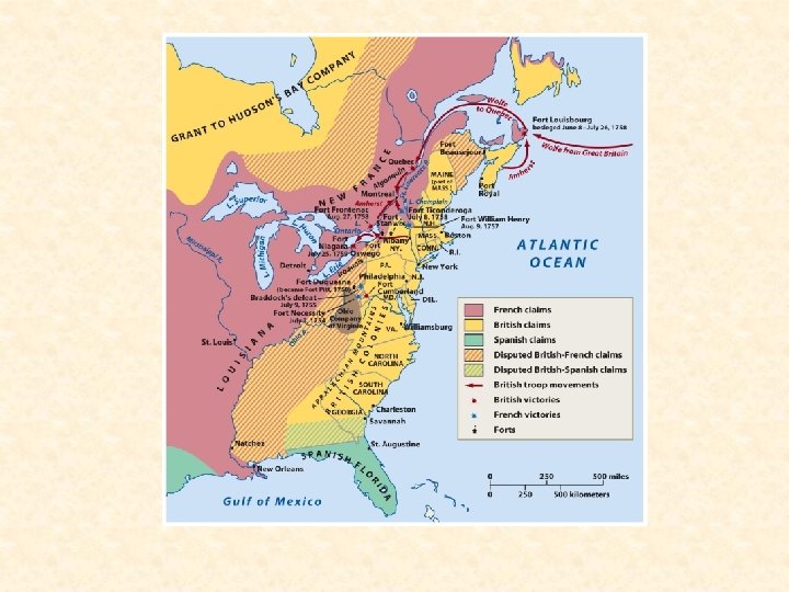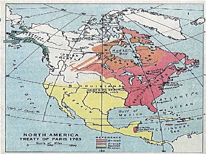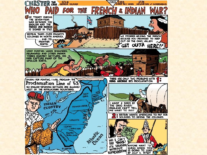 • Beginning in the late 1600’s – France and England competed for control of North America – Most Indians sided with France – series of wars for control • French believed that British were trying to take away their fur trade • British believed that the French were stopping their expansion west • French and Indian War – 1754 -1763 – England wins • Treaty of Paris – 1763 – peace treaty ending the war • 1. French lose all of their North American territories • 2. England controls everything east of the Mississippi – Spain controls everything west