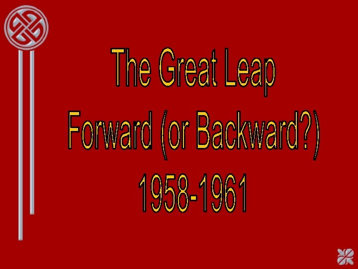 Great Leap Forward, 1958 ► 5 year plan to increase agriculture and industry ► Communes e Groups of people who live and work together e Property held in common e Had production quotas ► Failed due to poor quality of products, poor weather hurt agriculture